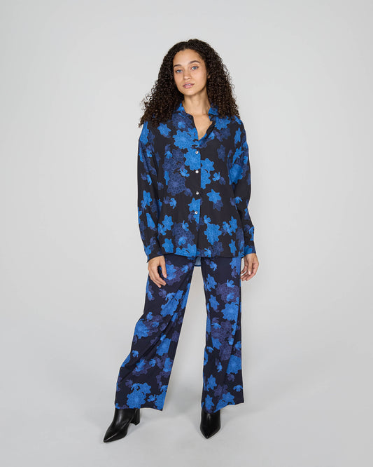 SOPHIE SILK OVERSIZED SHIRT - SOFTBLOOM NAVY