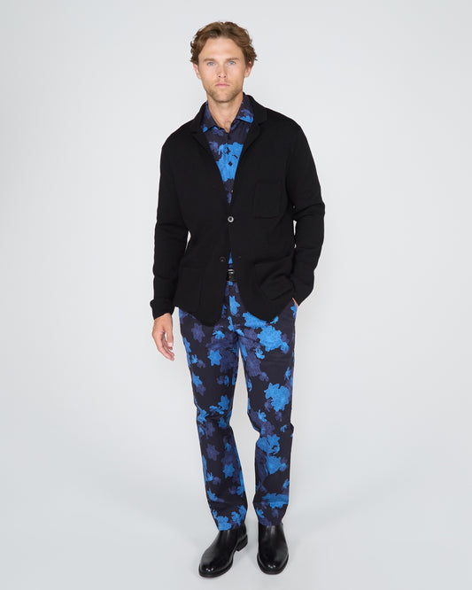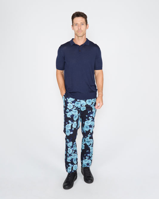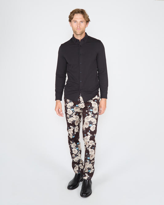BOBBY VALENCIA FLORAL MERINO JERSEY COLLARED SHIRT TEAL