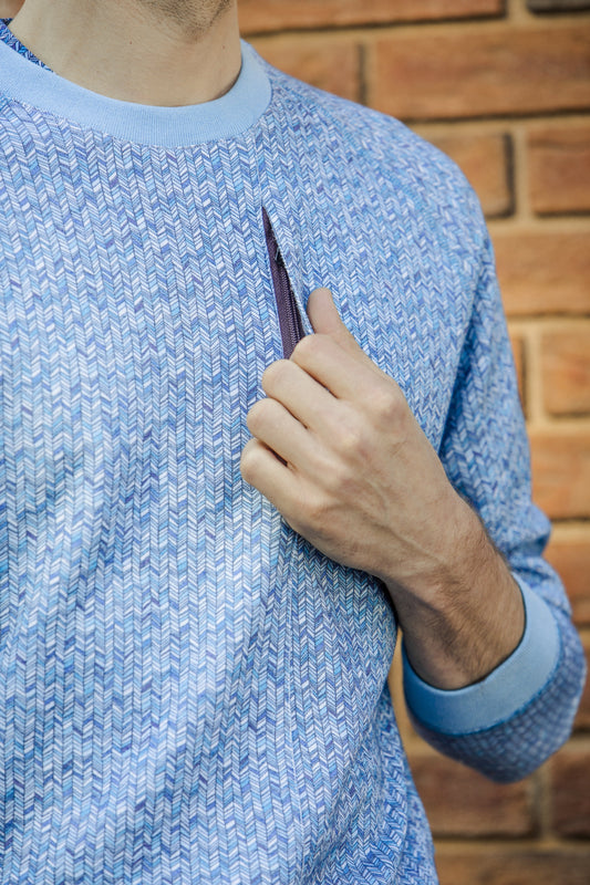 Jameson in Double Face Knit Chevron Blue Sweater