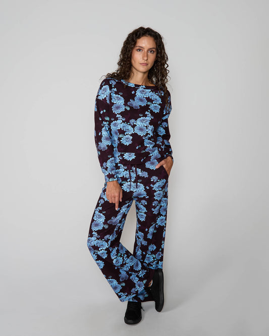 PAIGE SERIOUS FLORAL KNIT PANT - PLUM