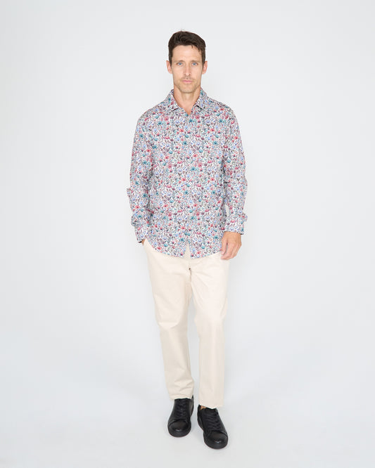 CASPIAN ROMA FLORAL STRETCH COTTON CHINO PANT - FLANNEL