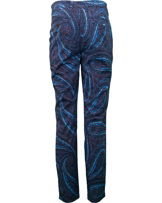 CASPIAN WILD PAISLEY OXFORD STRETCH COTTON CHINO PANT - BLUE
