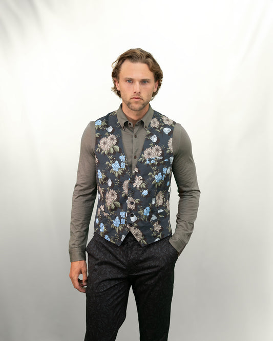 WILBUR SERIOUS FLORAL WAISTCOAT VEST - BLACK