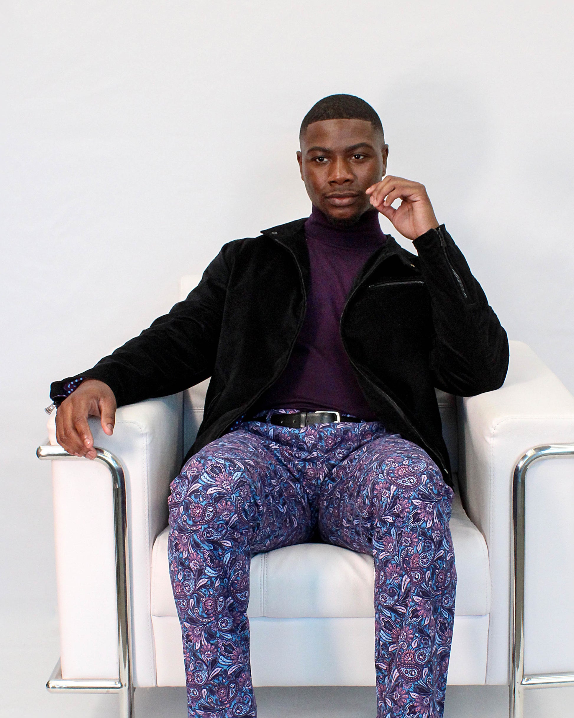 DEAN STRETCH VELVET BIKER JACKET - BLACK
