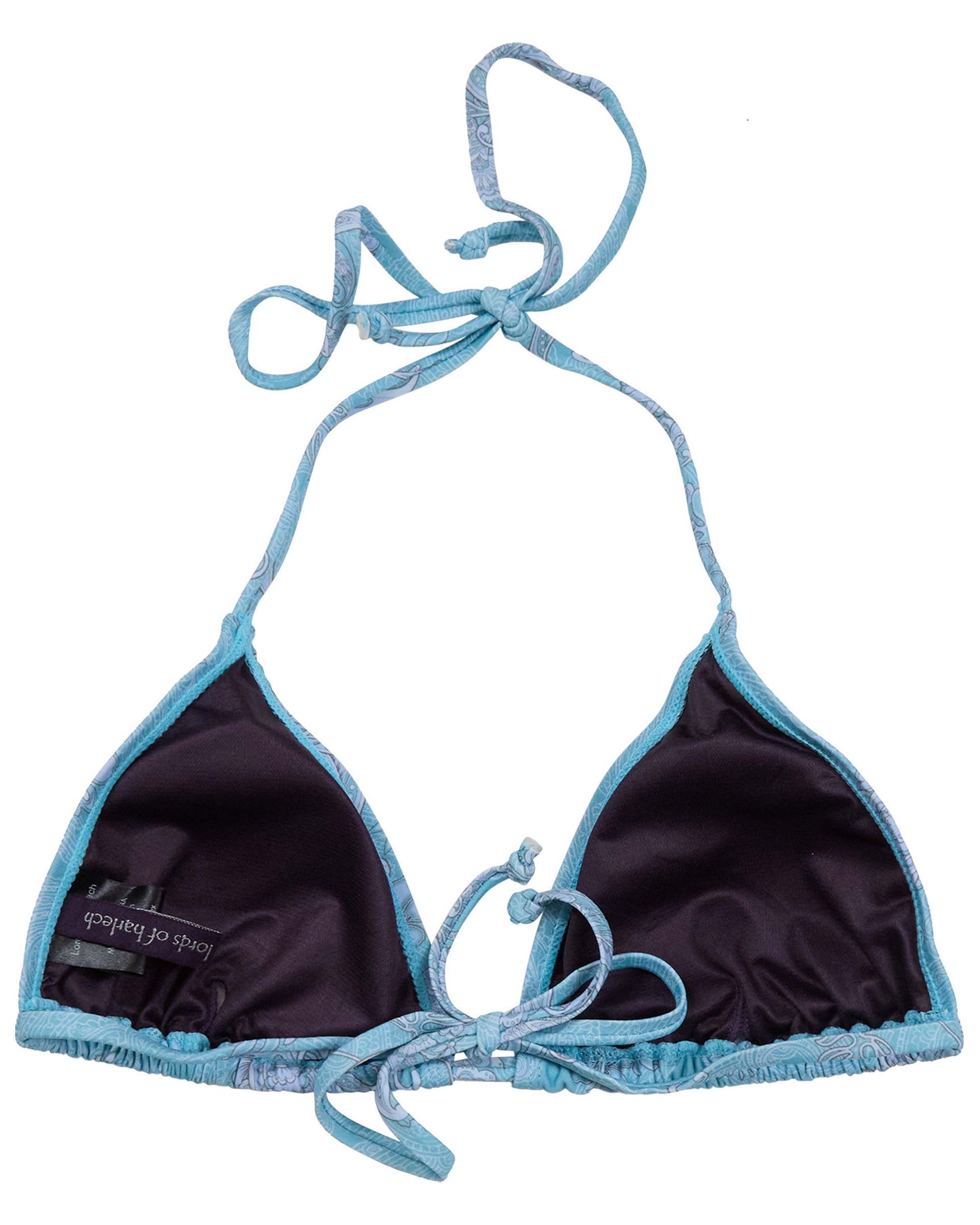 The Flavia bikini top is a classic string triangle designed for sun drenched days and effortless mix and match styling. It ties at the neck and back for an adjustable fit and is sold separately so you can build your set your way. Pair it with the coordinating Bonita bottom or style it with solid swim for contrast.