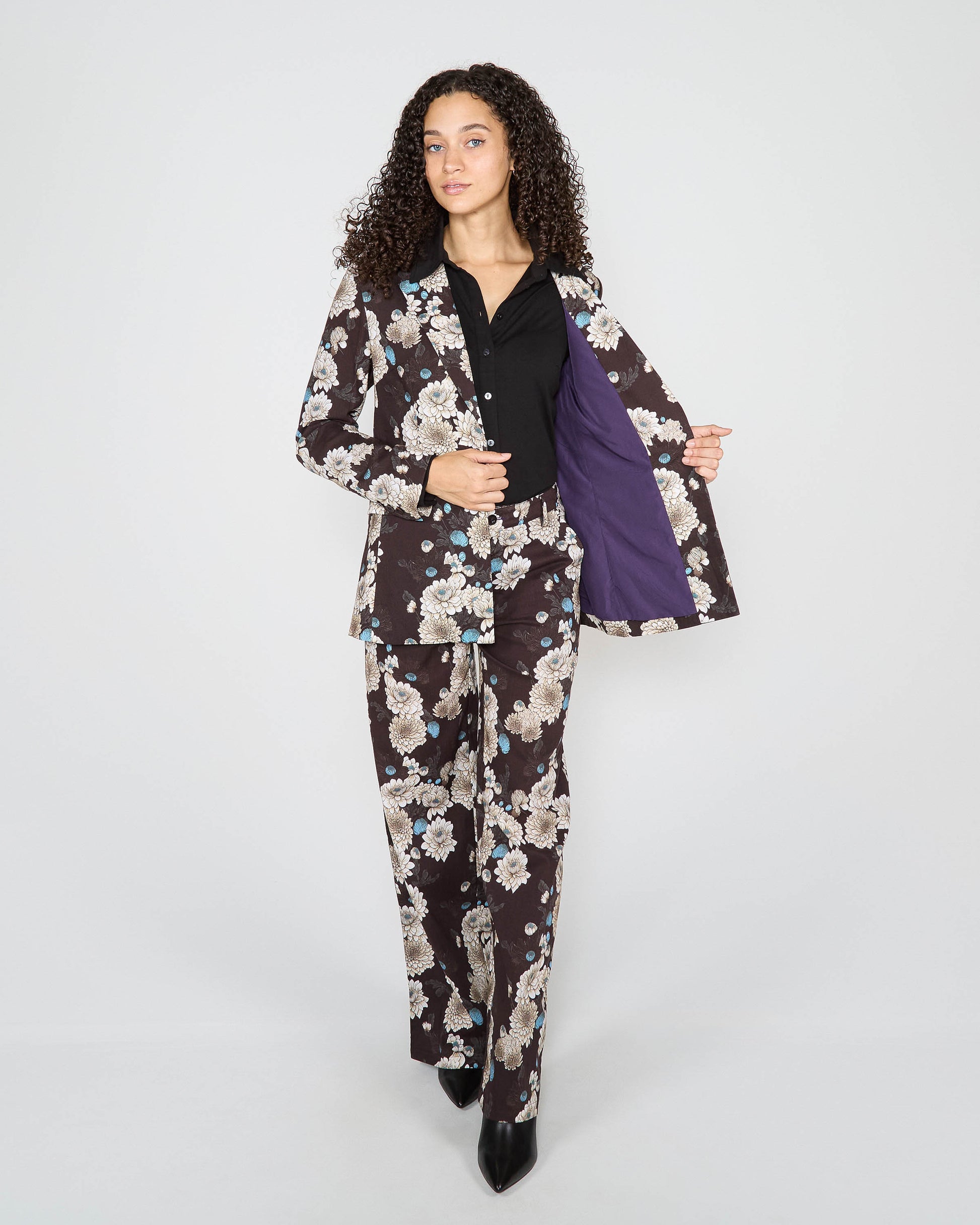JANE SERIOUS FLORAL TAILORED BLAZER - BLACK