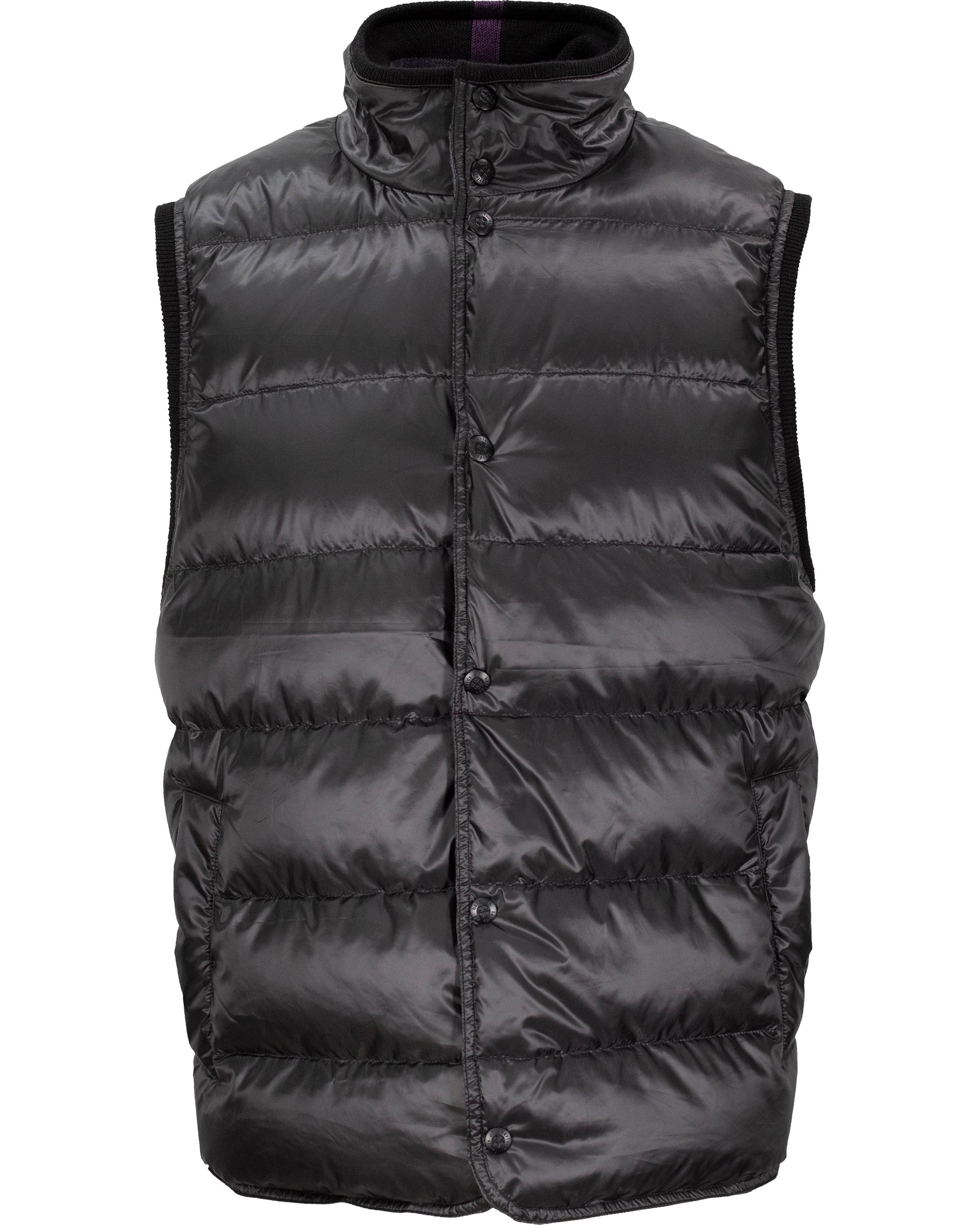 The Jork Vest is a refined hybrid layer engineered for warmth, movement, and elevated texture. The front is crafted from full-dull nylon and filled with premium duck down, offering an insulated, polished exterior ideal for colder weather. In contrast, the back is fashioned from a luxurious merino–silk–cashmere sweater knit, creating a soft, flexible fit that layers effortlessly under coats or over lightweight sweaters.