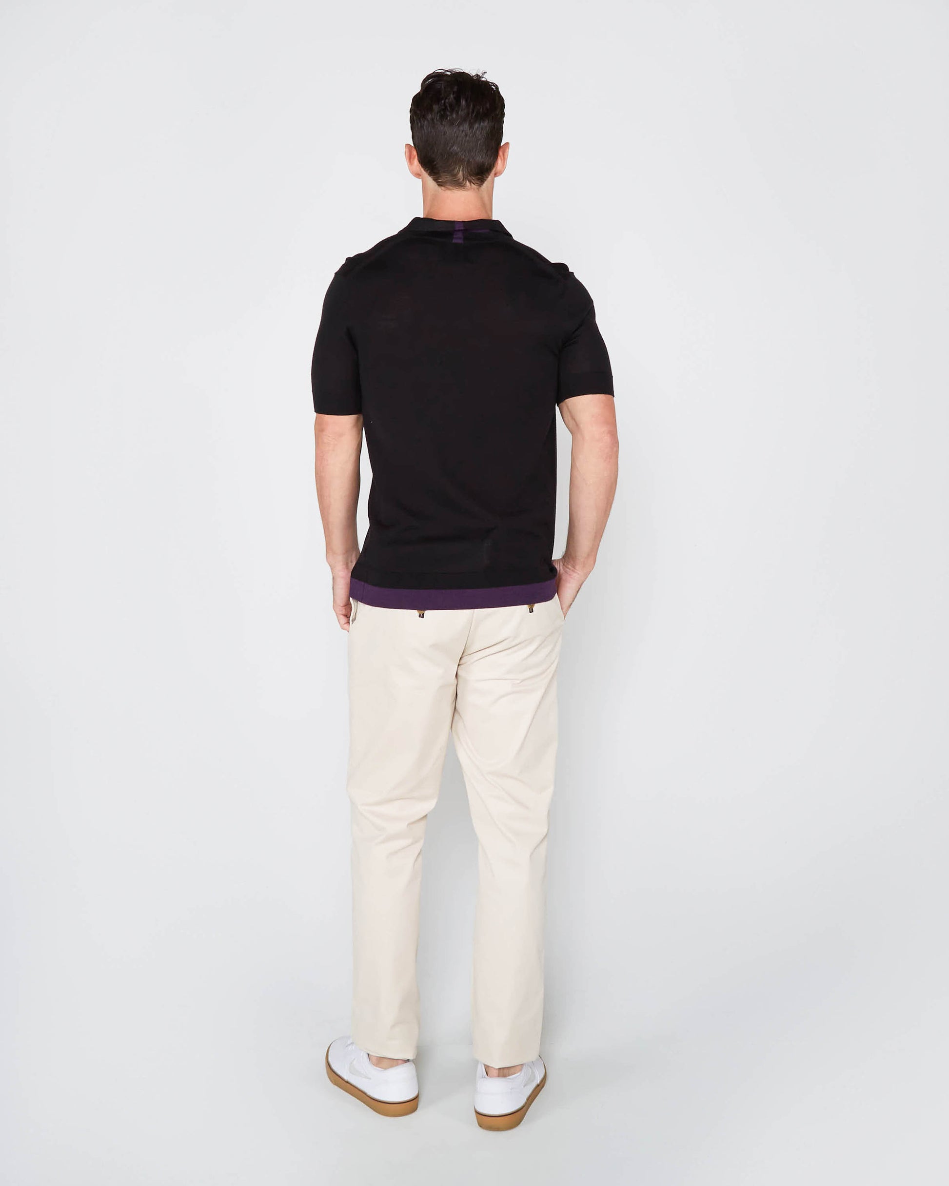 Onze Pilgrim polo is gemaakt van 70% ultrafijne merinowol, 20% zijde en 10% kasjmier... wat hem extreem zacht en lichtgewicht maakt! De fijne garens zorgen ervoor dat deze gebreide trui ademt en rekbaar is, voor ultiem comfort. Kijk goed en zie de contrasterende geribbelde zoom voor een extra vleugje liefde.