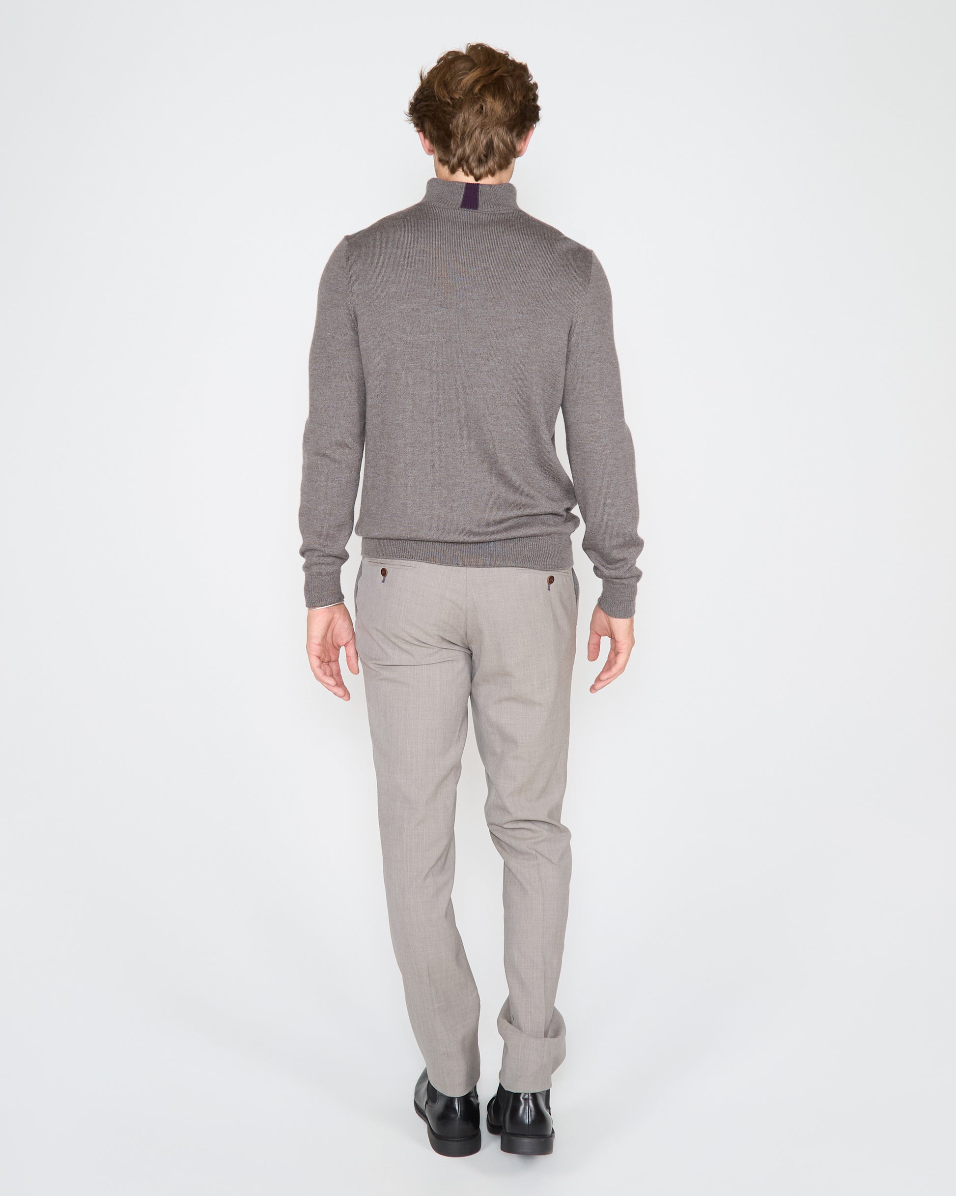 QUEST VOLLEDIG MODEL MERINO TRUI MET KWARTRITS - MARINEBLAUW OLIJF TWIST