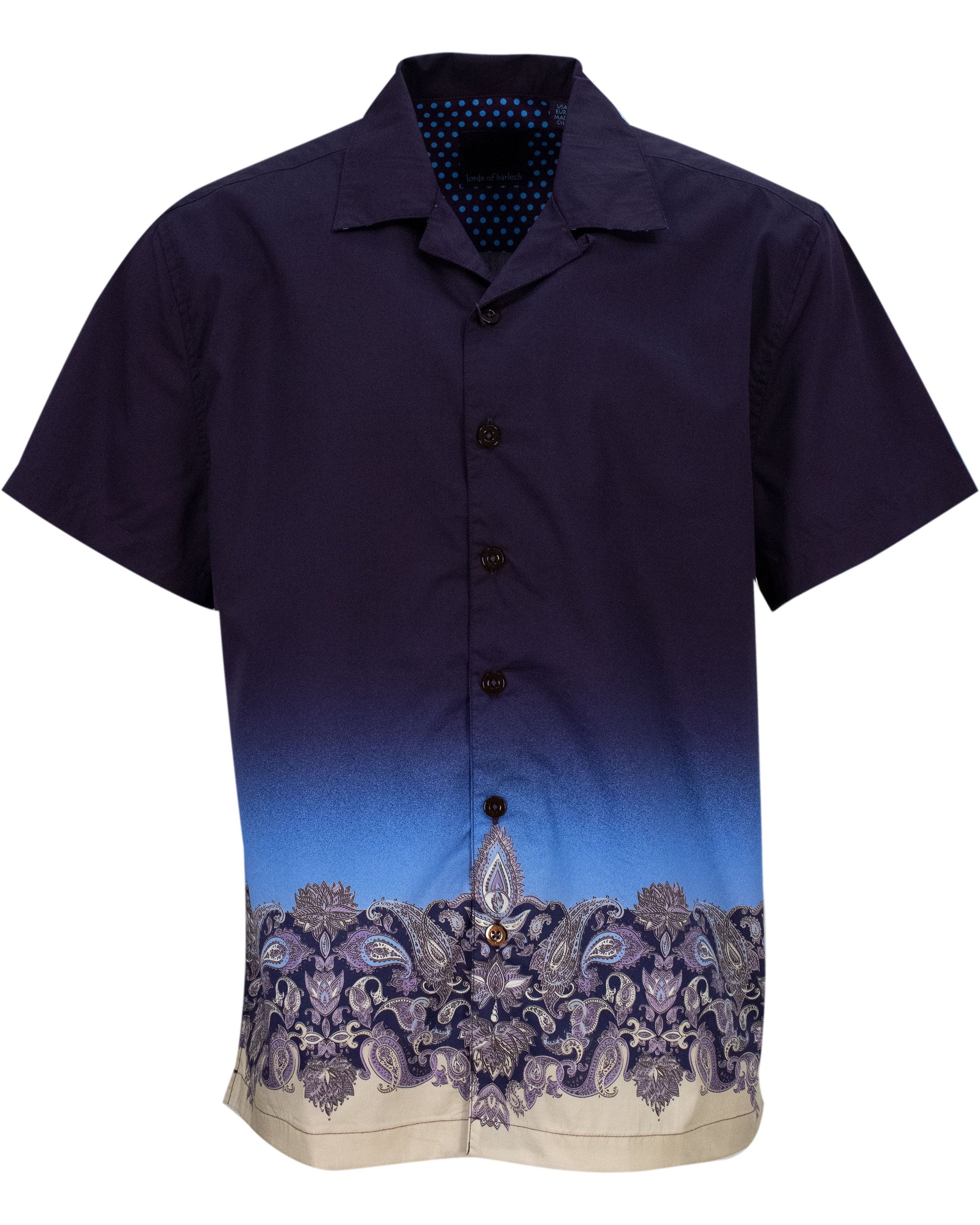 RALPH BORDER PAISLEY CAMP SHIRT - NAVY