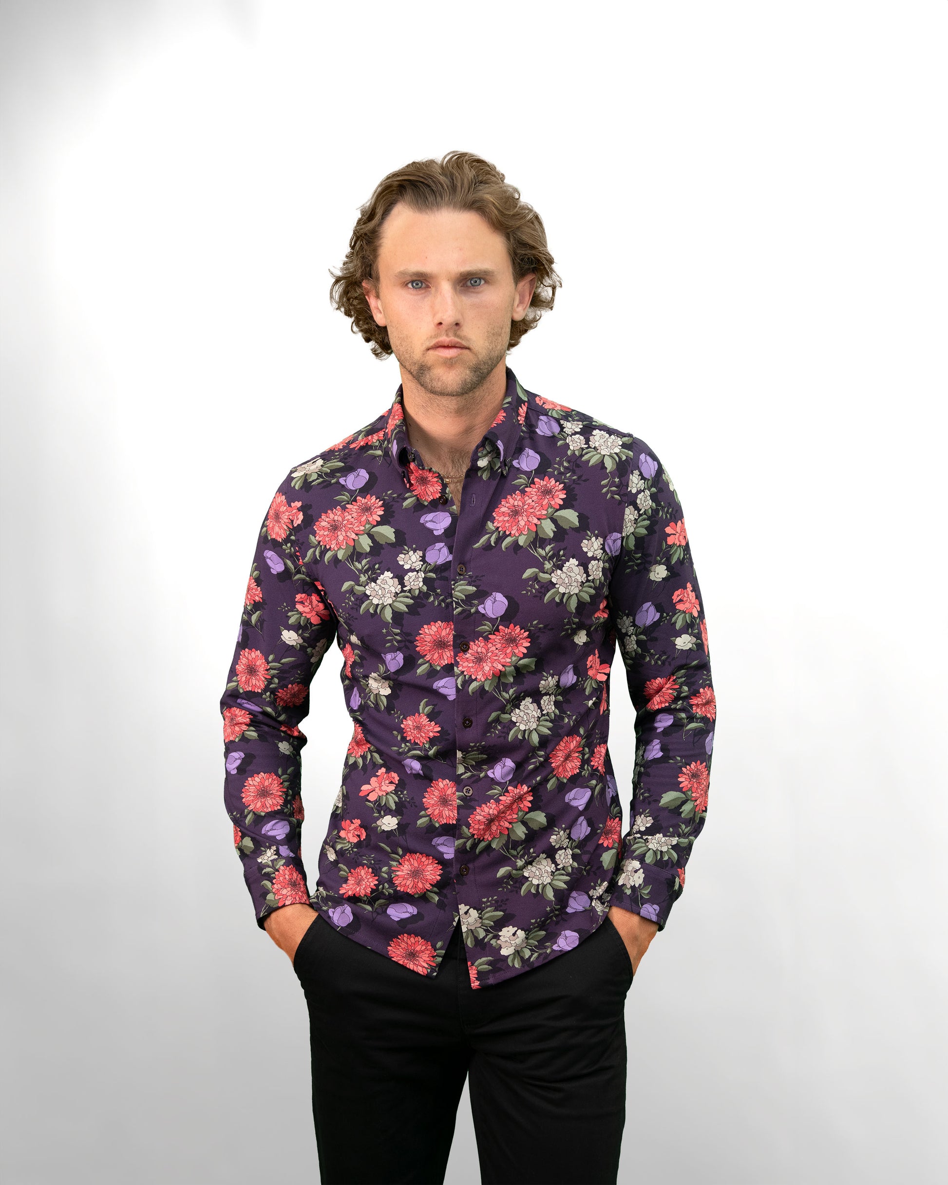 SAWYER AUGUSTUS FLORAL KNIT SHIRT - PLUM