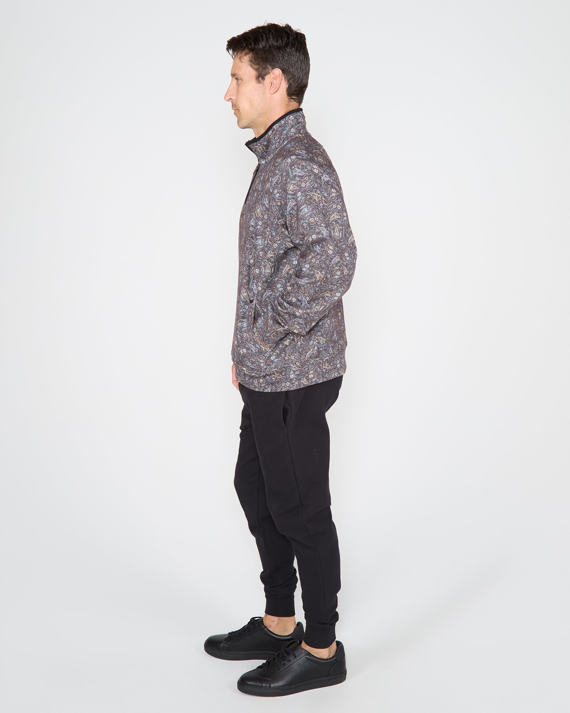 CRAIG MADRID PAISLEY QUARTER-ZIP SWEATER - SMOKE