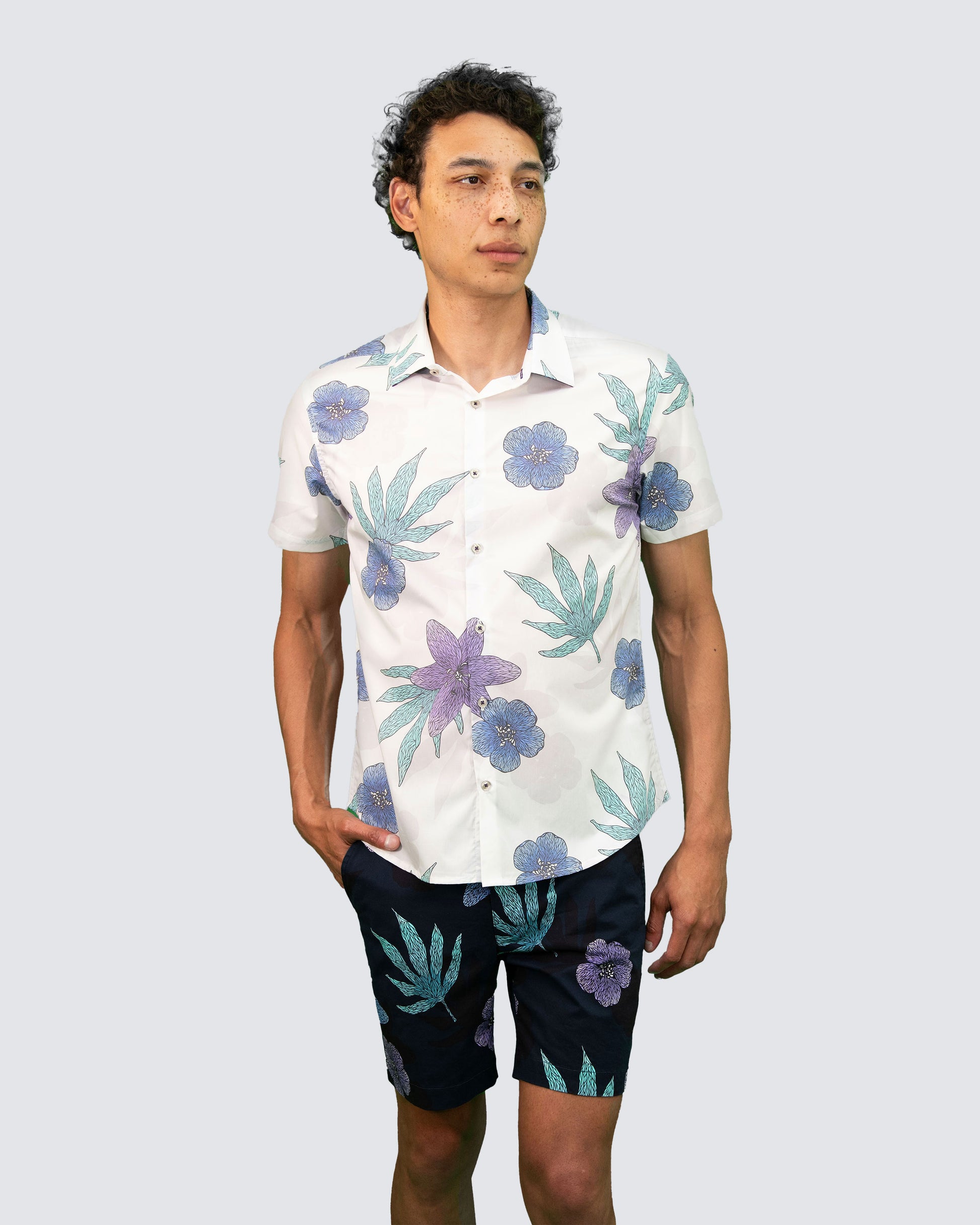 GEORGE FLORAL MEMORY SHIRT - WHITE