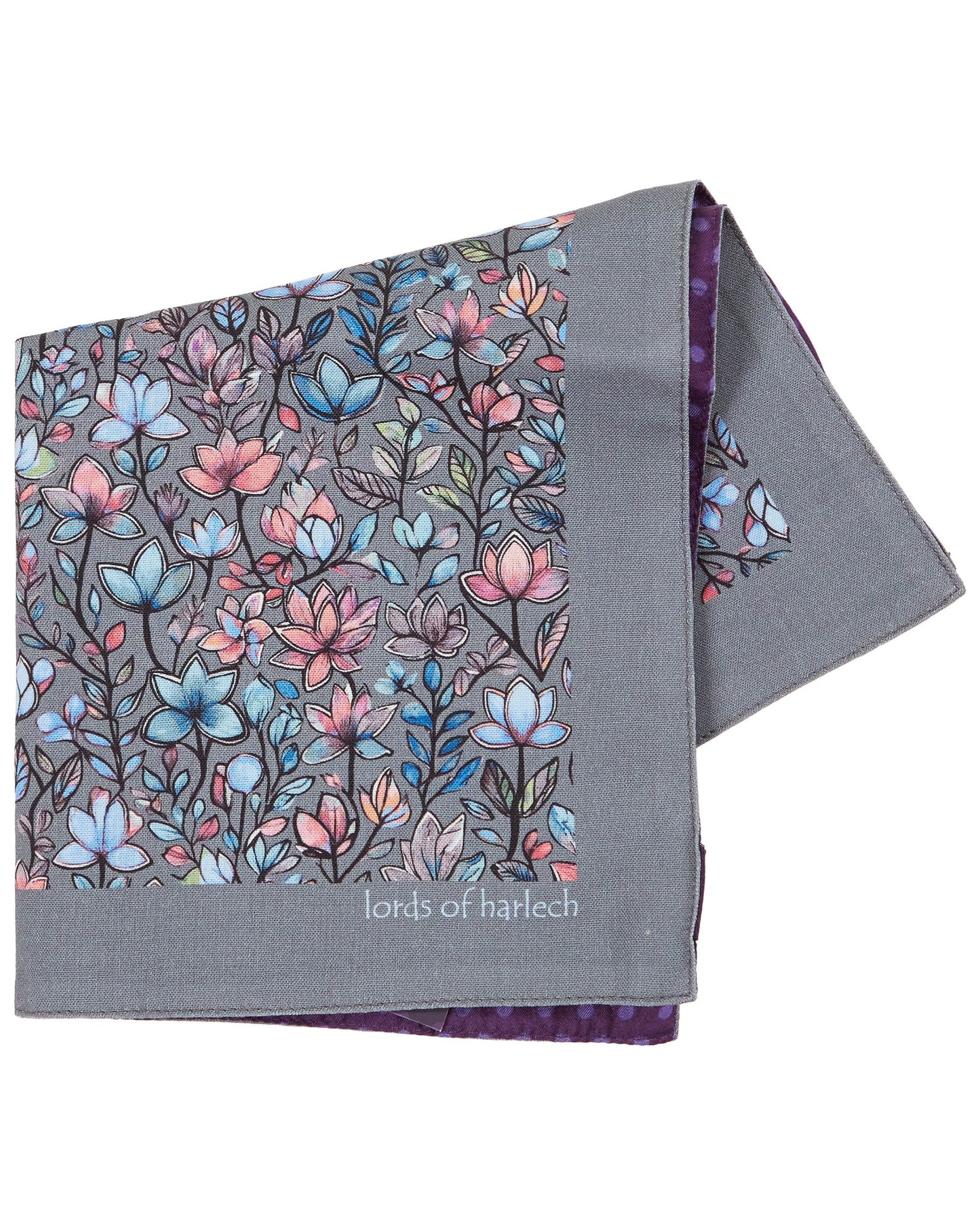 HUDSON MYSTIC FLORAL MERINO HANDKERCHIEF POCKET SQUARE - GREY