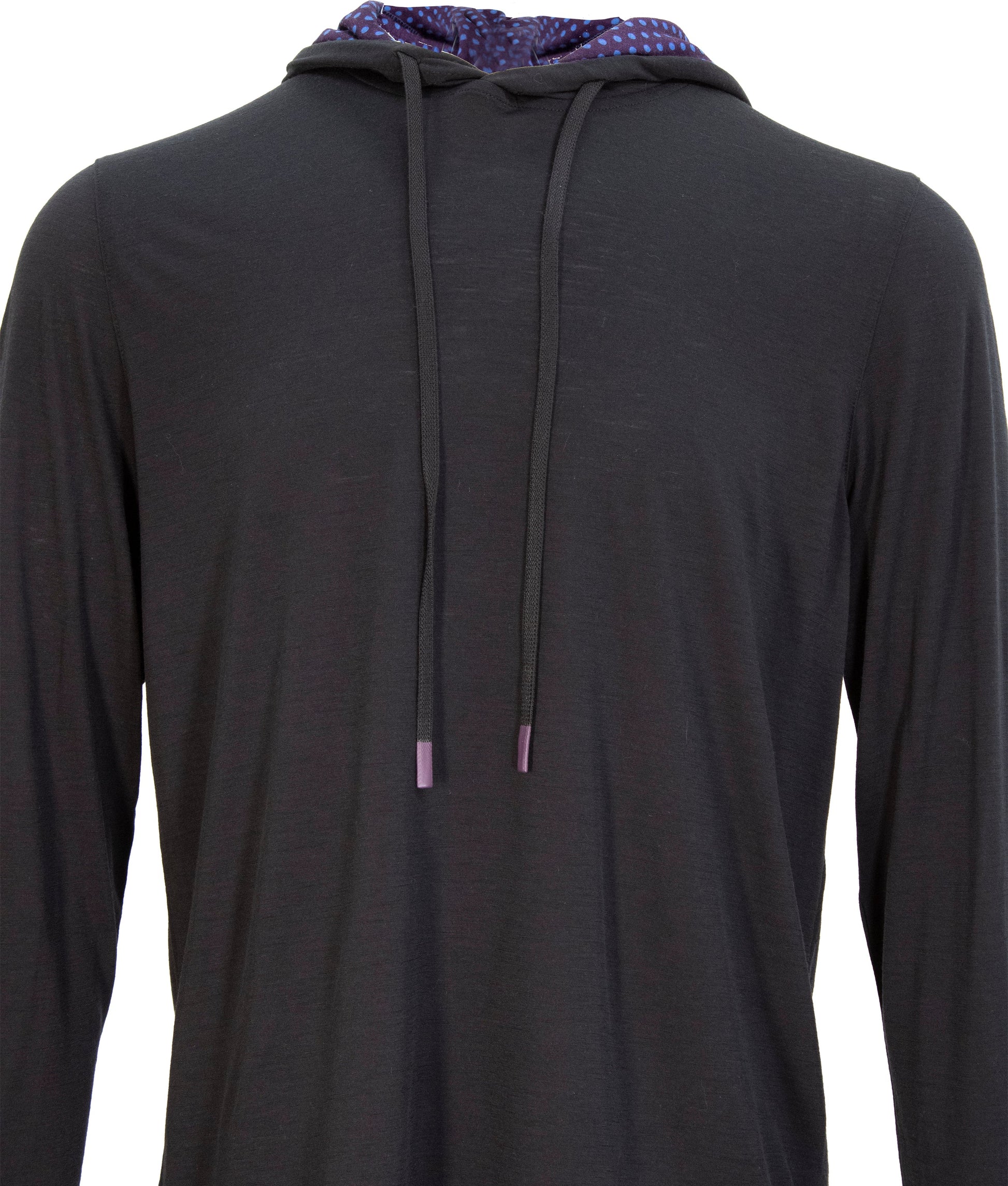The Hugo might just be our smartest hoodie. It's made from merino jersey, a fabric that knows when to warm you up and when to chill. So you don't even have to think about taking it off. It does all the thinking for you! 100% Extrafine Merino Jersey Back shoulder taping (signature polka dot trim) Regular Fit