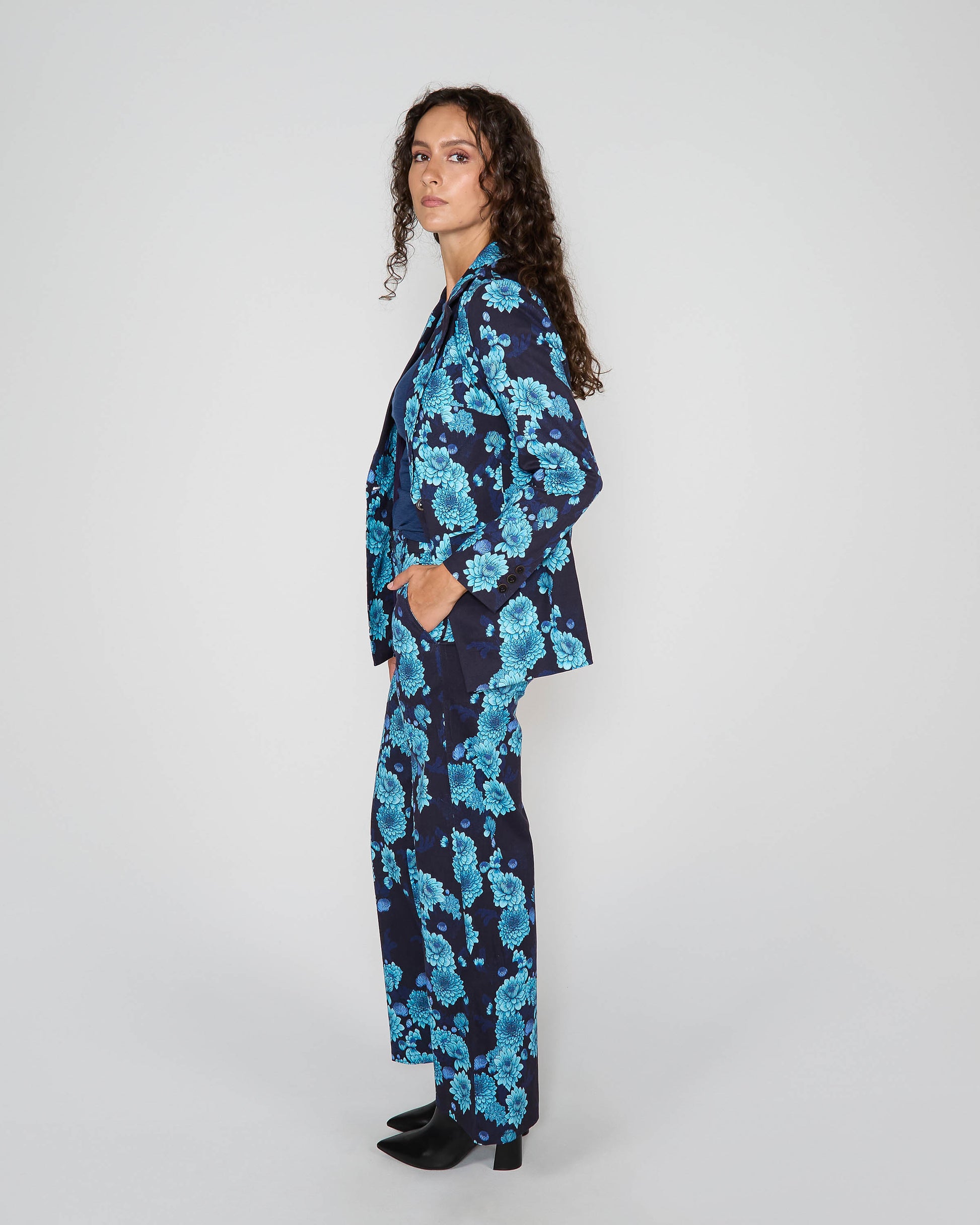 JANE SERIOUS FLORAL TAILORED BLAZER - NAVY