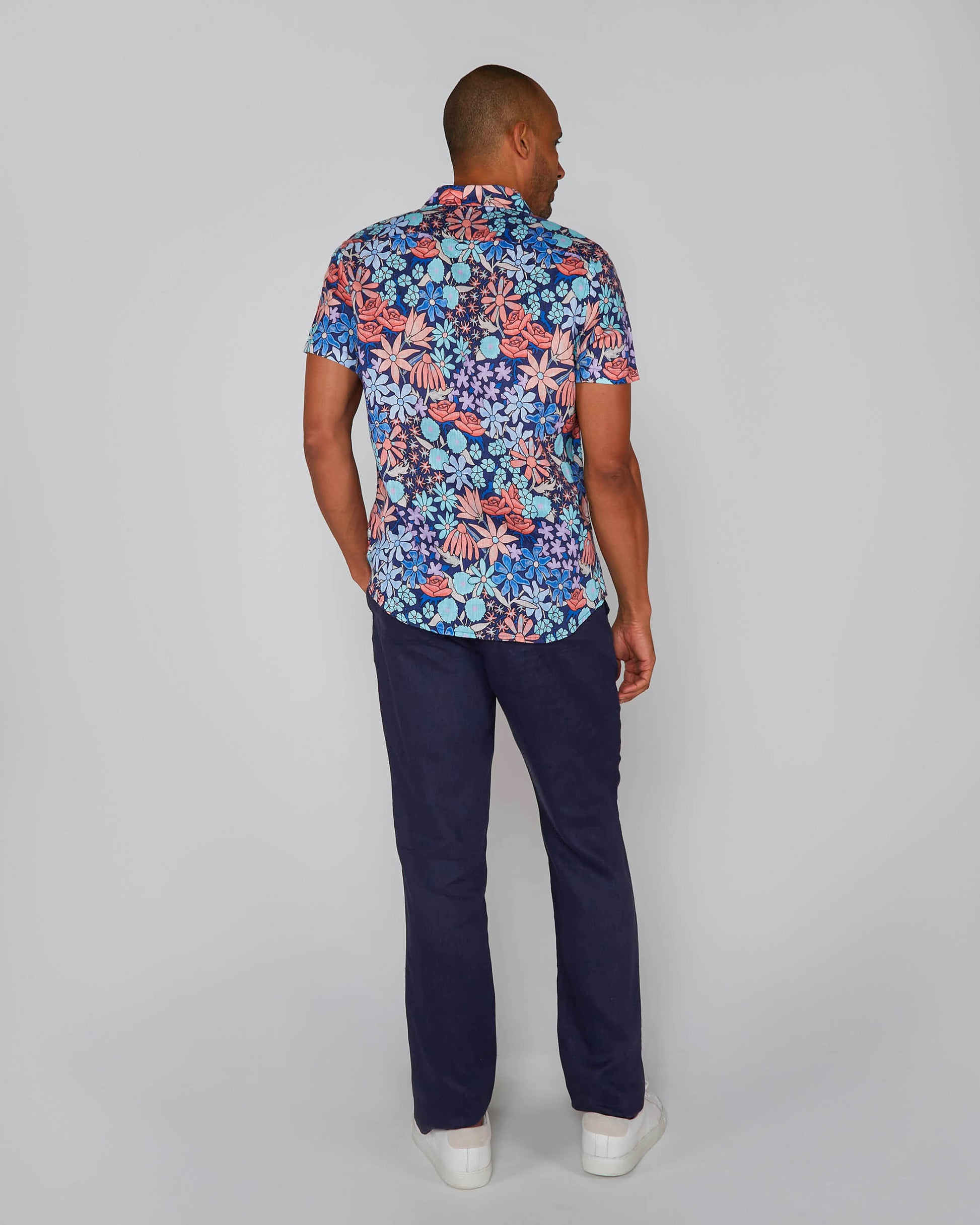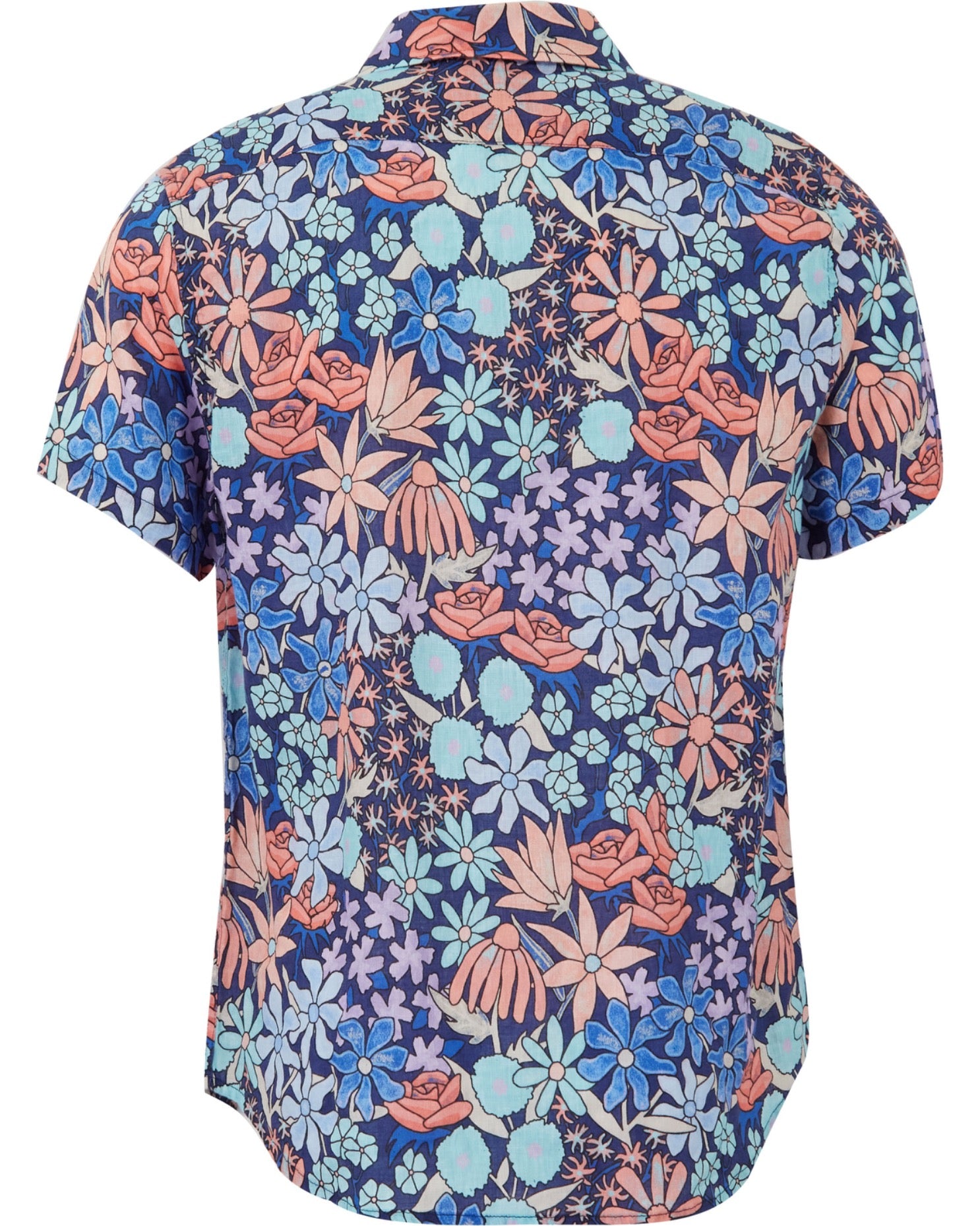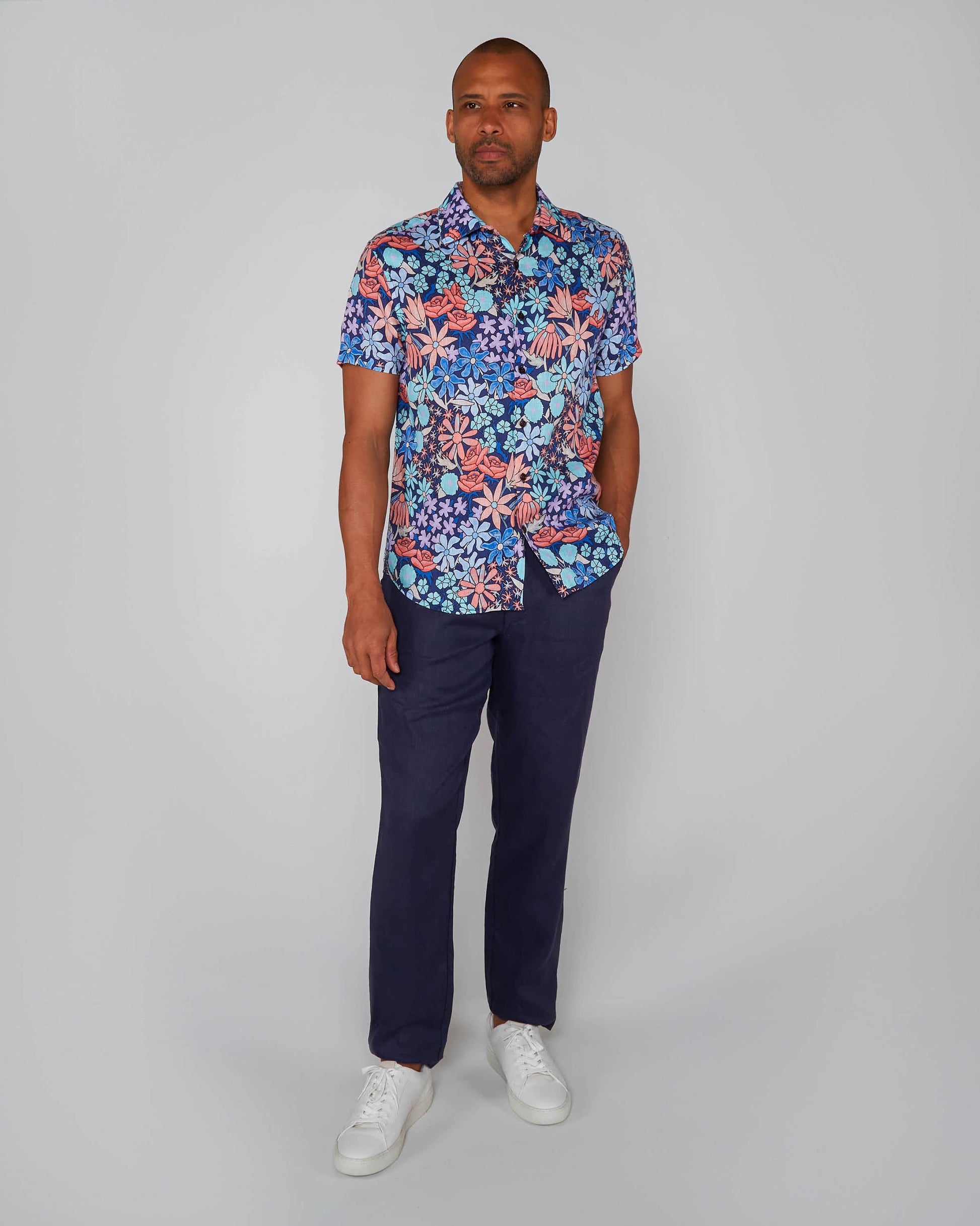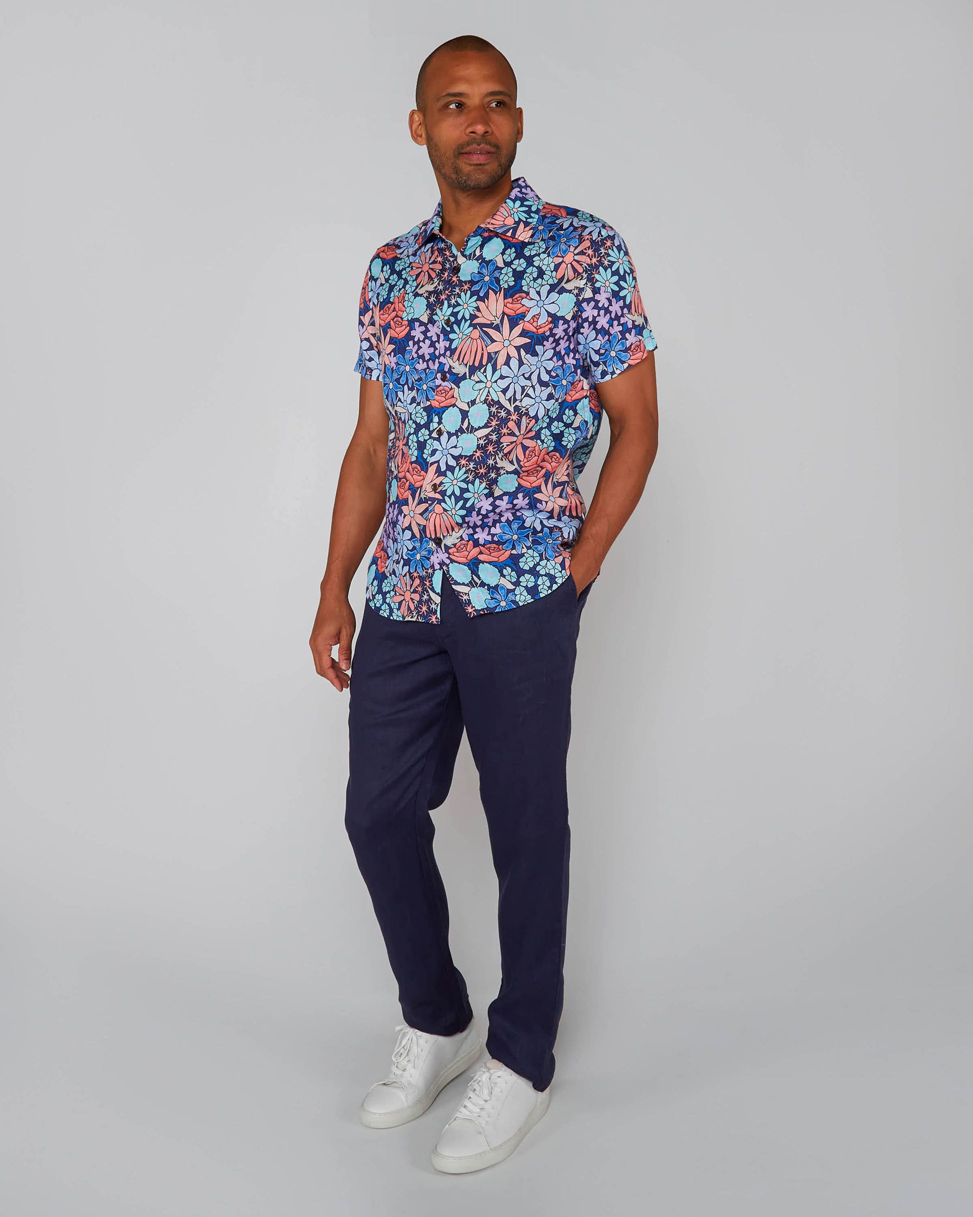 LANDON ROUGH FLORAL LINEN SHIRT - NAVY
