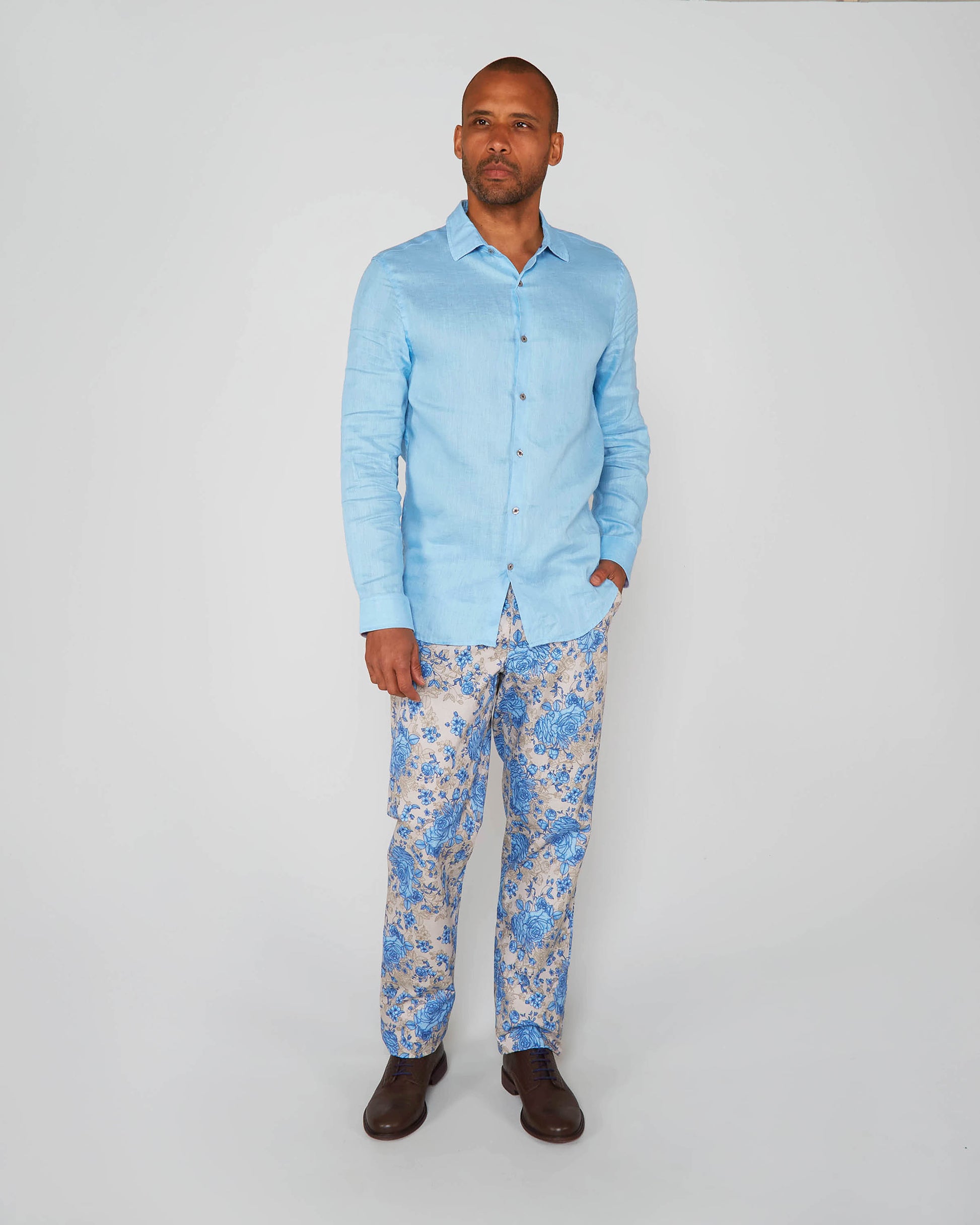 This long sleeve button-down shirt, made in Italy from 100% premium linen, exudes timeless elegance and exceptional craftsmanship. The lightweight, breathable linen fabric is perfect for keeping you cool and comfortable, even on warmer days. Its natural texture offers a relaxed yet refined look, while the durable fibers ensure a long-lasting garment. With a classic button-down design and a tailored fit, this shirt provides a sophisticated silhouette that's versatile enough for both casual and smart-casual occasions. Whether layered or worn on its own, this Italian-made linen shirt is a luxurious addition to any wardrobe.