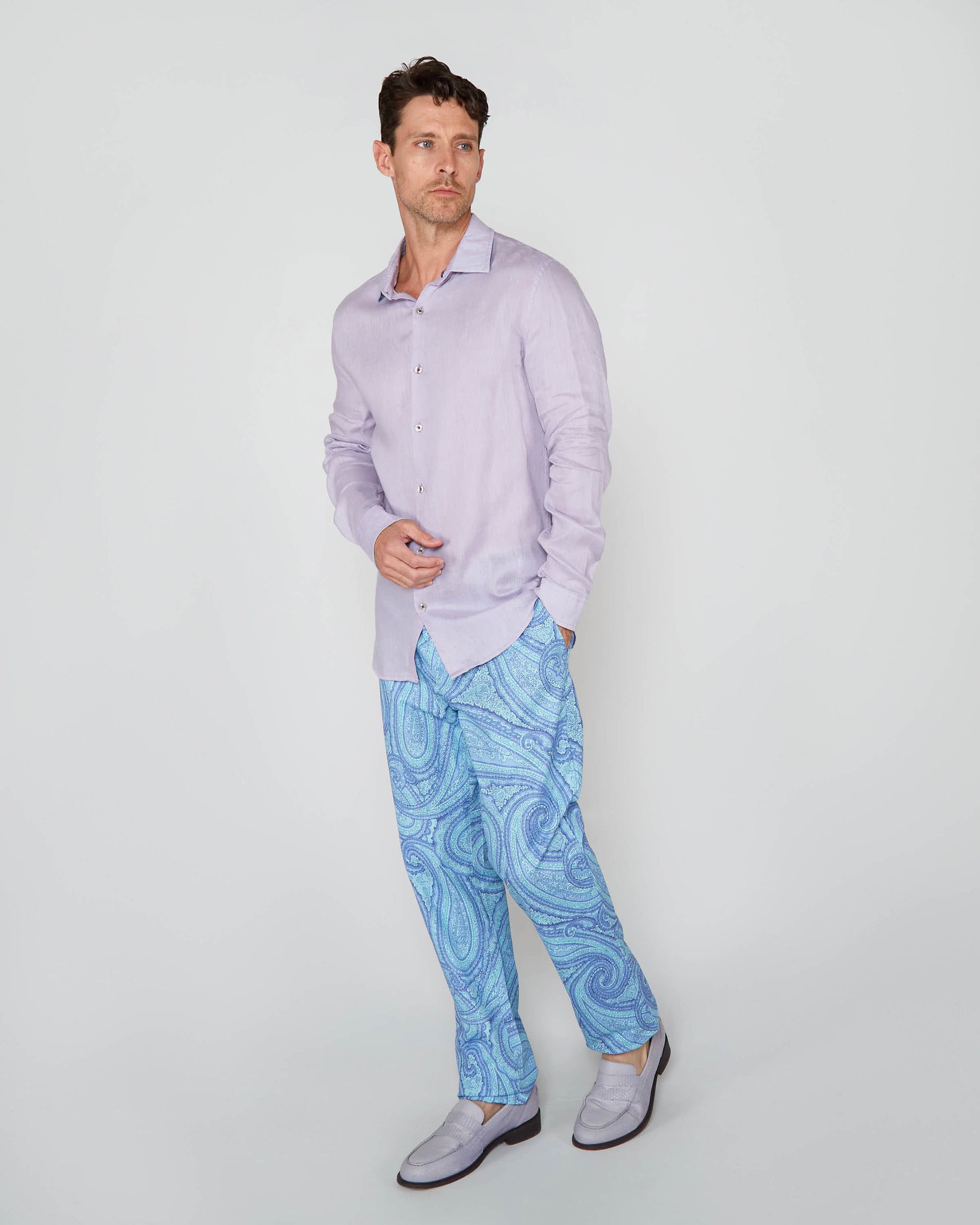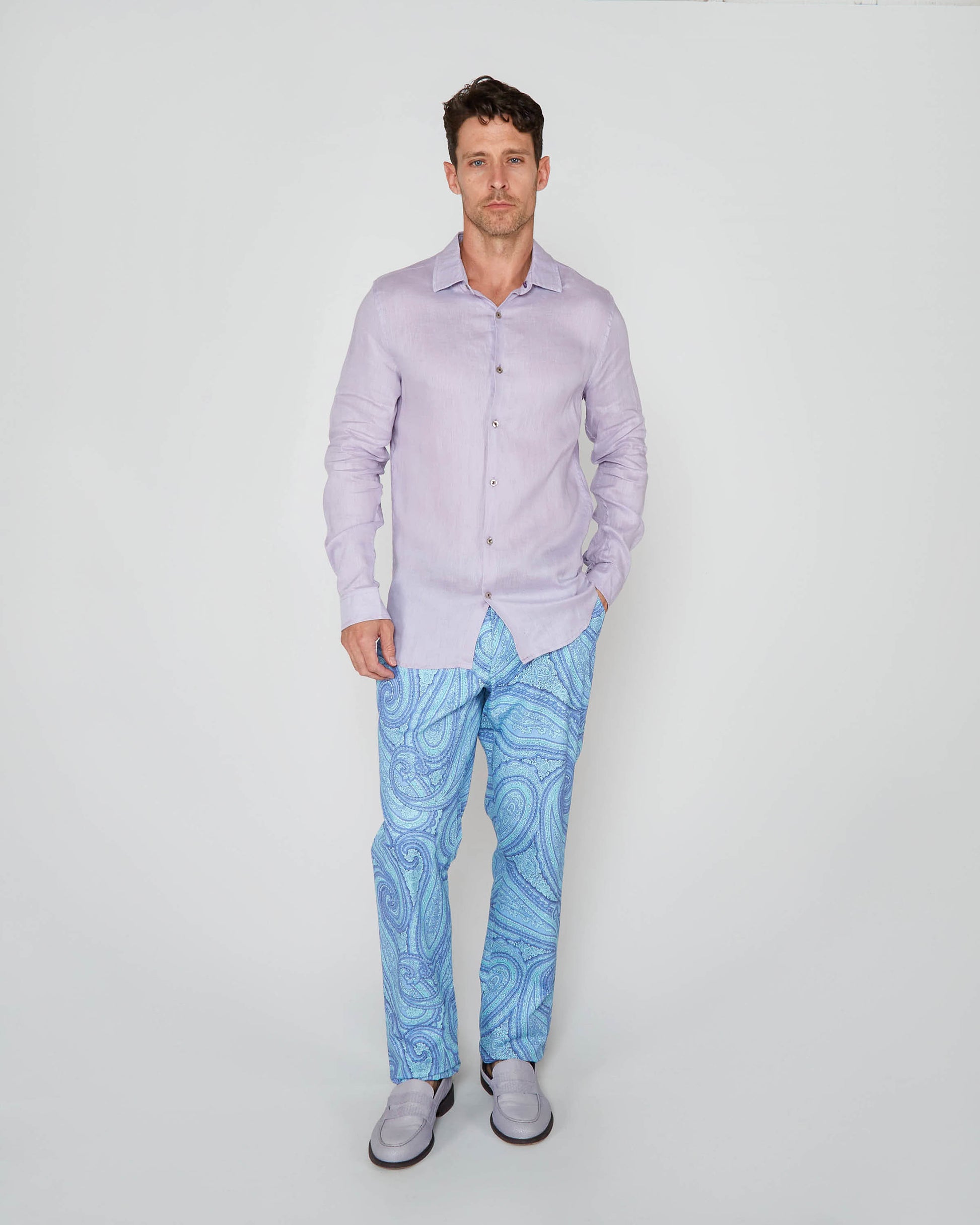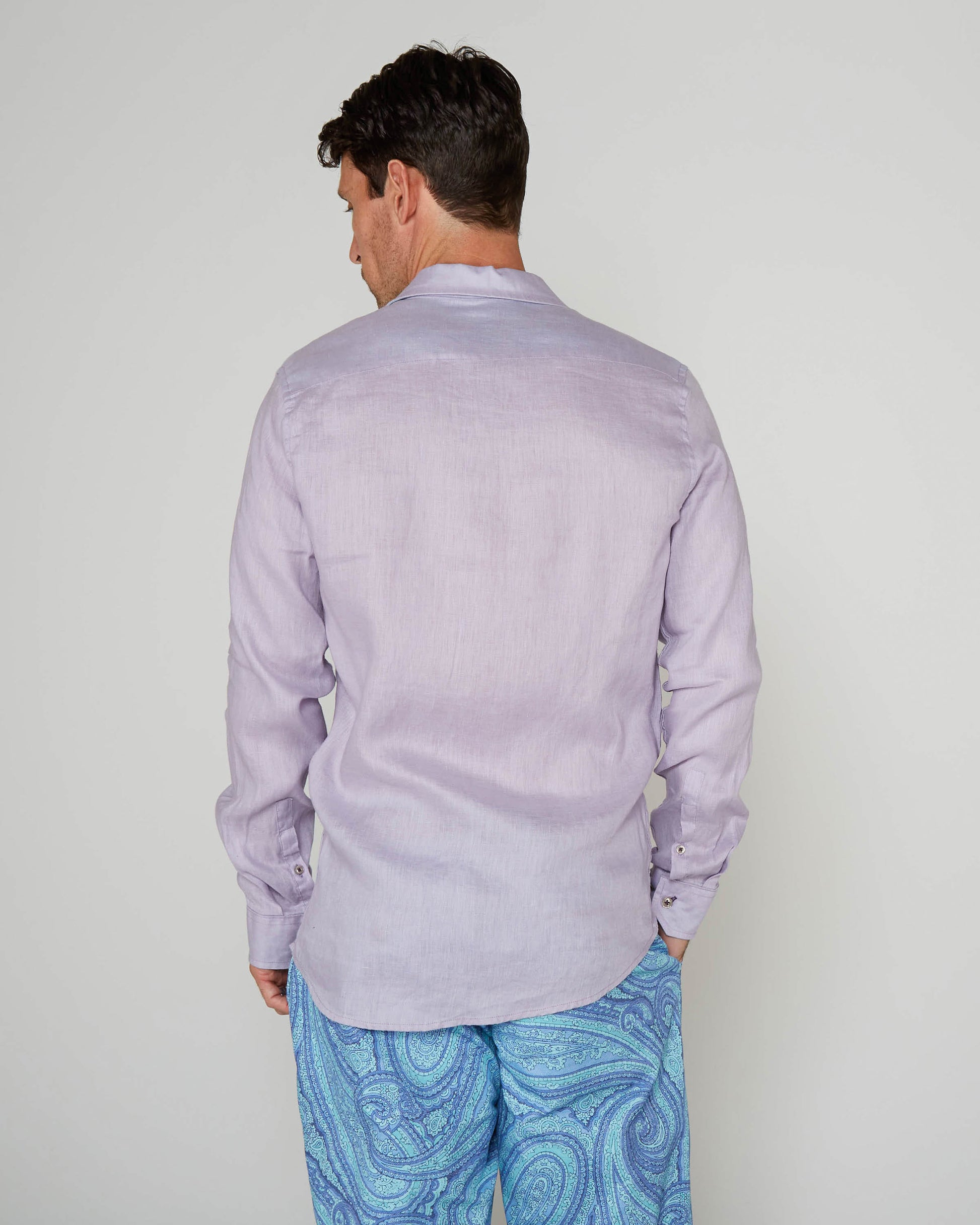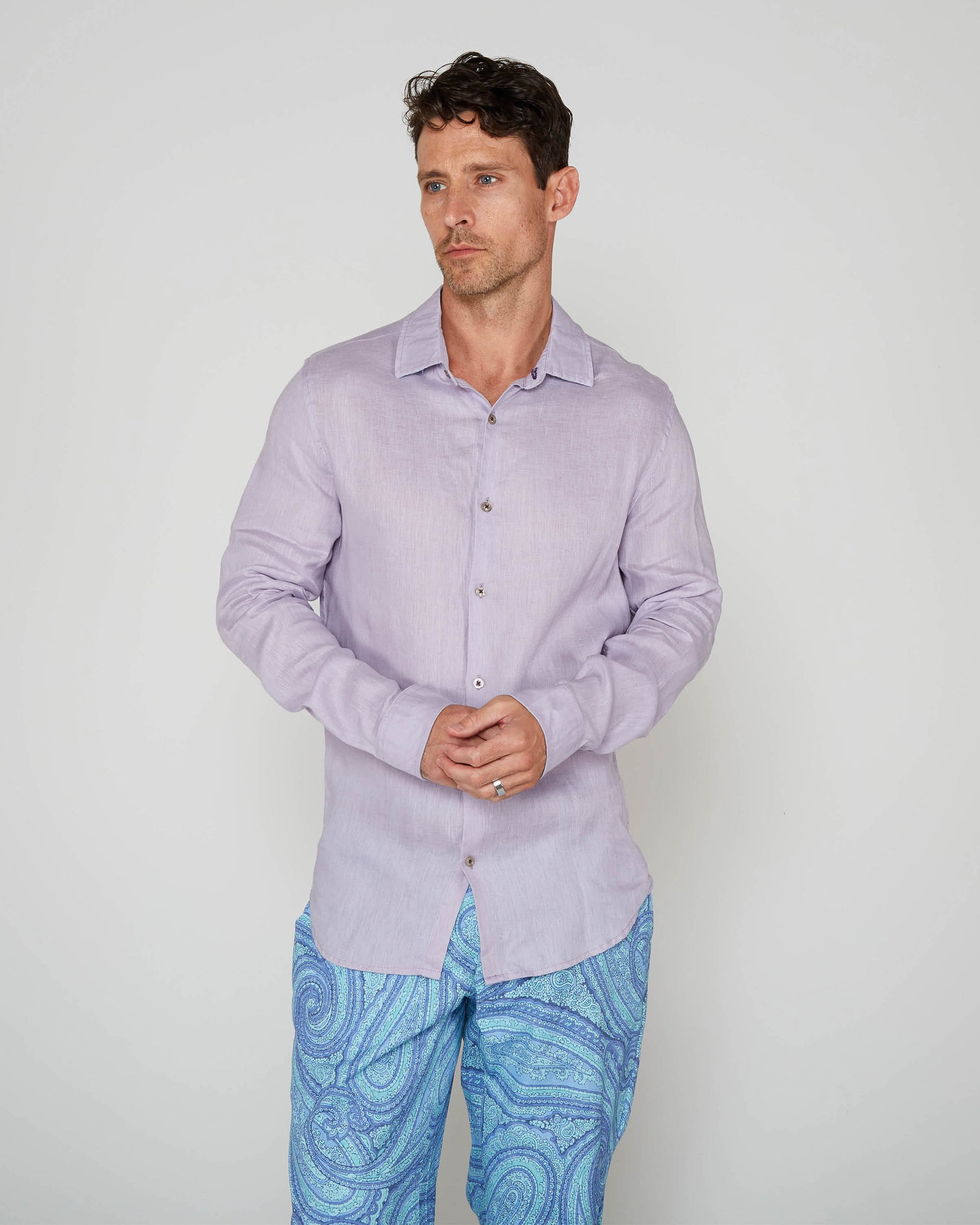 This long sleeve button-down shirt, made in Italy from 100% premium linen, exudes timeless elegance and exceptional craftsmanship. The lightweight, breathable linen fabric is perfect for keeping you cool and comfortable, even on warmer days. Its natural texture offers a relaxed yet refined look, while the durable fibers ensure a long-lasting garment. With a classic button-down design and a tailored fit, this shirt provides a sophisticated silhouette that's versatile enough for both casual and smart-casual occasions. Whether layered or worn on its own, this Italian-made linen shirt is a luxurious addition to any wardrobe.