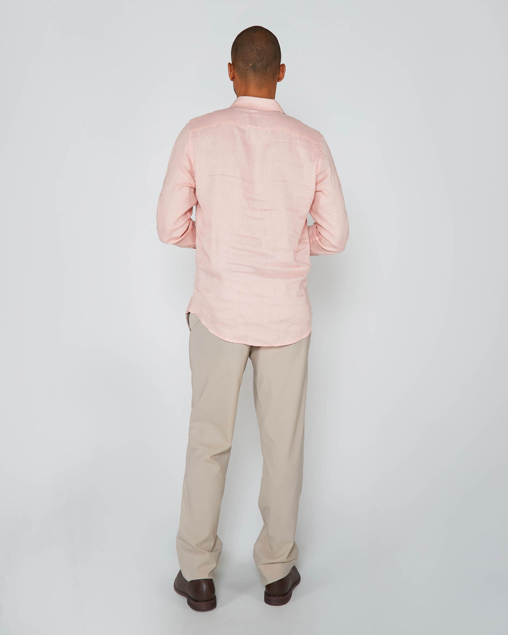This long sleeve button-down shirt, made in Italy from 100% premium linen, exudes timeless elegance and exceptional craftsmanship. The lightweight, breathable linen fabric is perfect for keeping you cool and comfortable, even on warmer days. Its natural texture offers a relaxed yet refined look, while the durable fibers ensure a long-lasting garment. With a classic button-down design and a tailored fit, this shirt provides a sophisticated silhouette that's versatile enough for both casual and smart-casual occasions. Whether layered or worn on its own, this Italian-made linen shirt is a luxurious addition to any wardrobe.