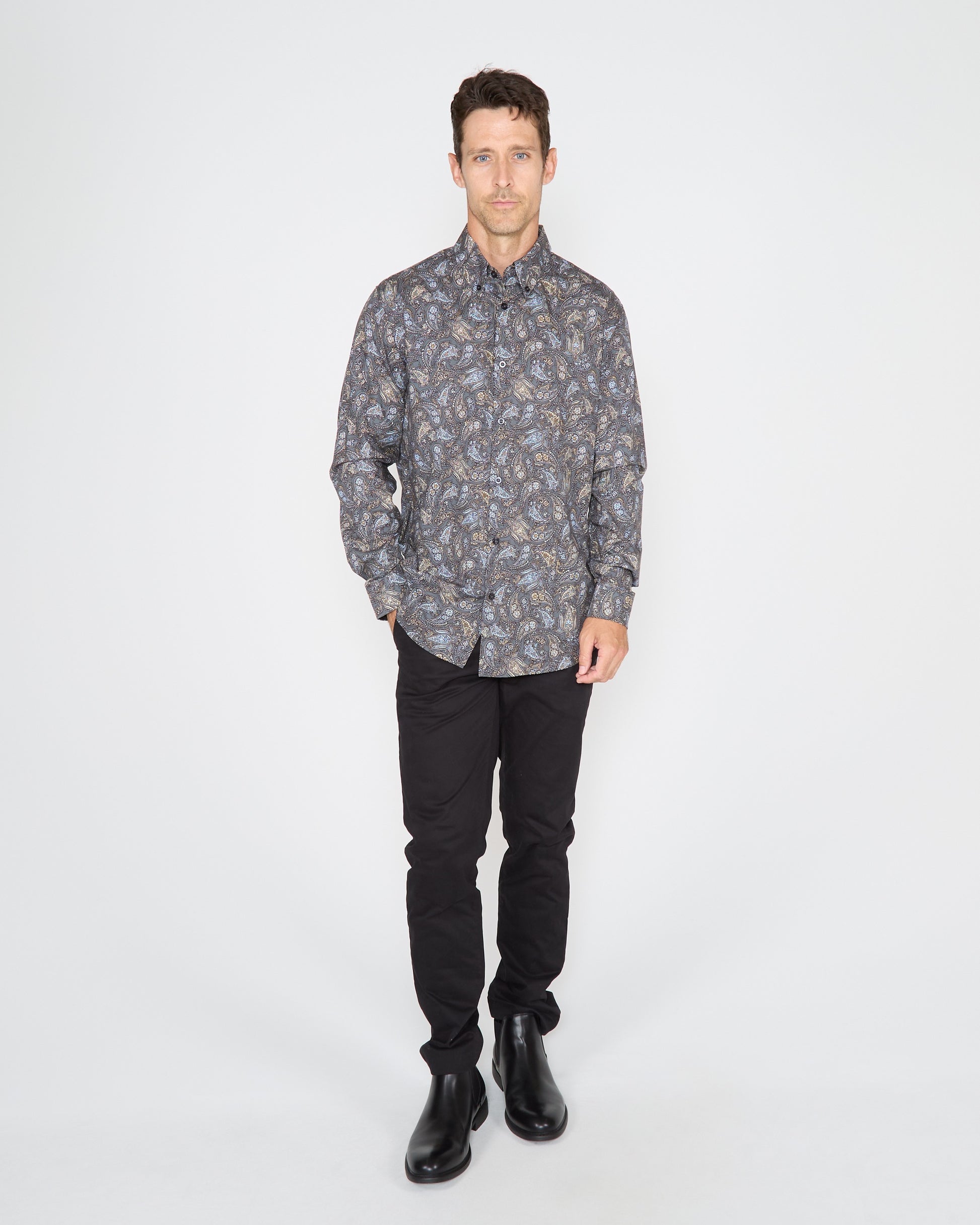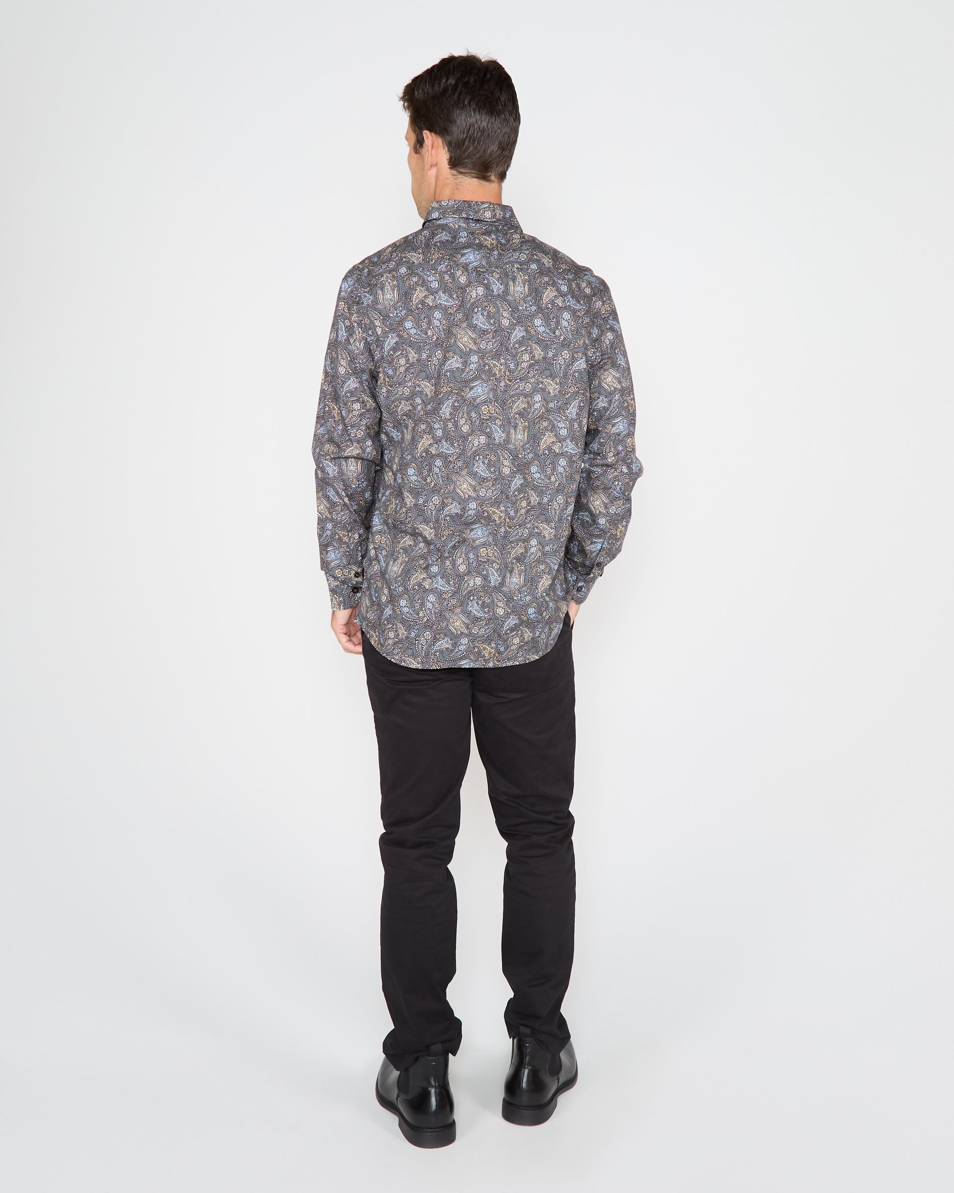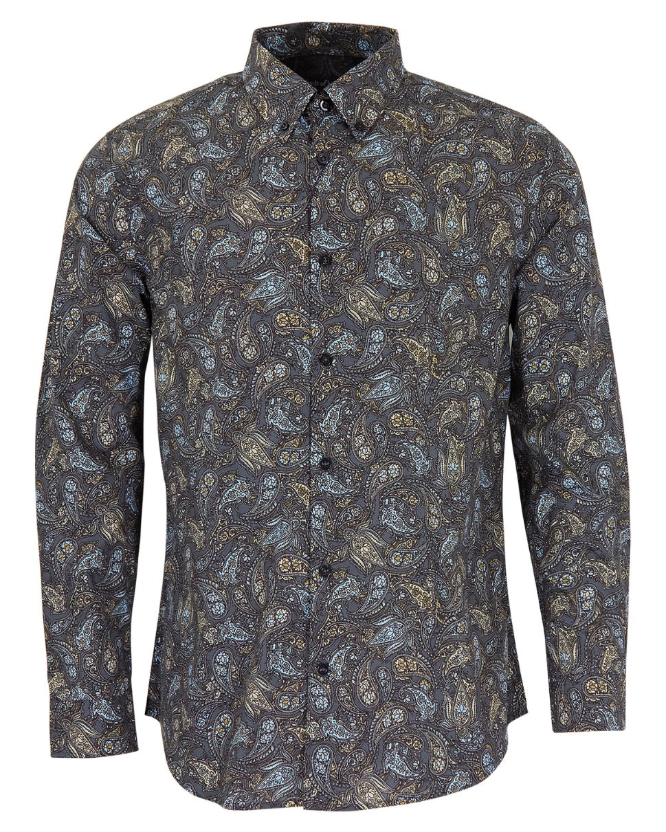 MORRIS MADRID PAISLEY SHIRT - SMOKE