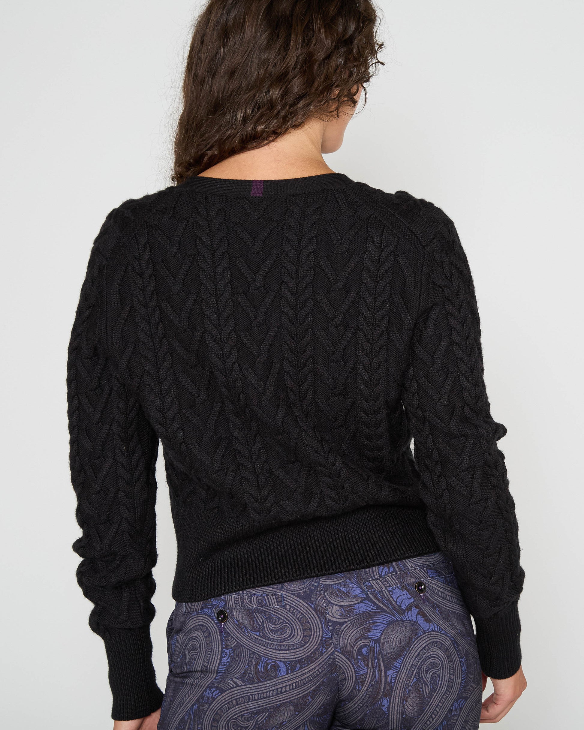 SAMANTHA TEXTURED CABLE KNIT SWEATER - BLACK