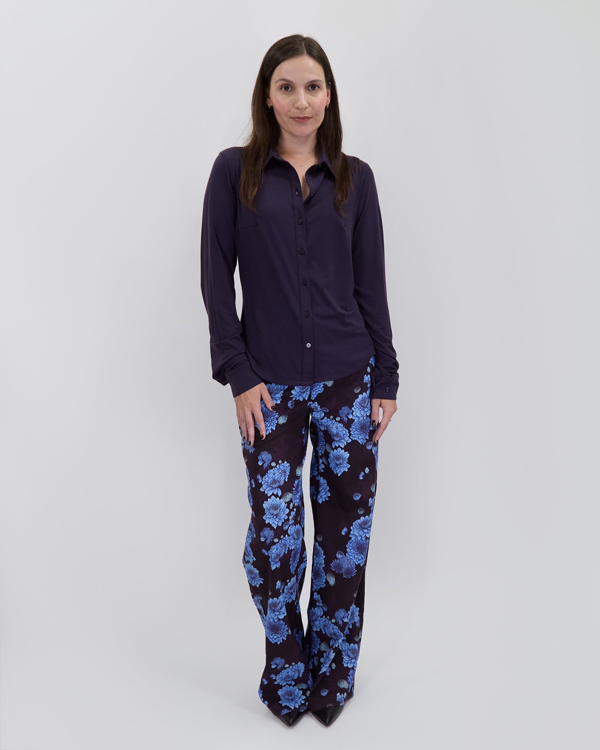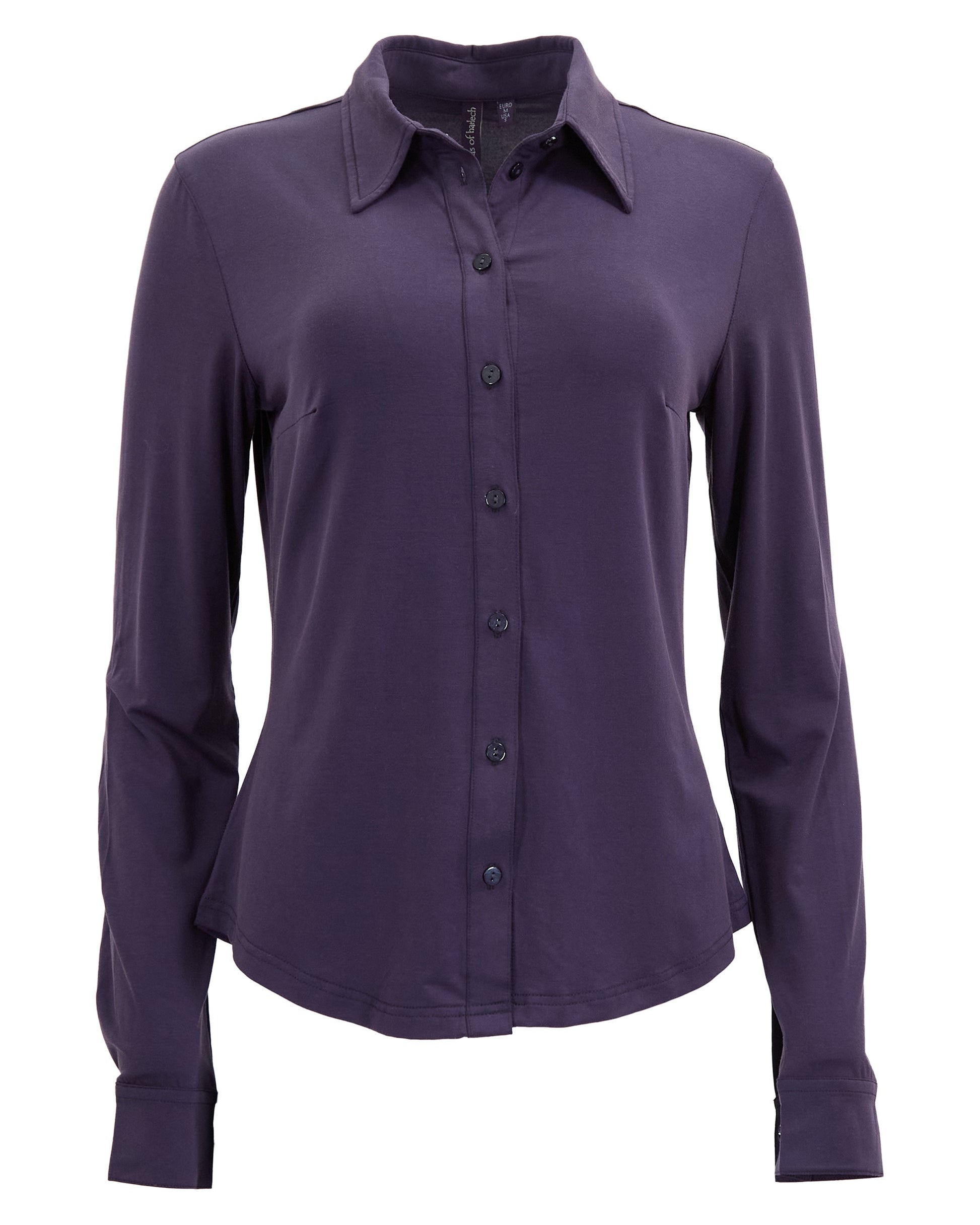 A classic silhouette, reimagined in a luxuriously soft knit. Designed with a relaxed yet polished look, it features a button front and fluid drape that moves with you. Dress it up for the office, layer it under a blazer, or wear it untucked for a laid-back feel. This shirt brings effortless versatility to any wardrobe.