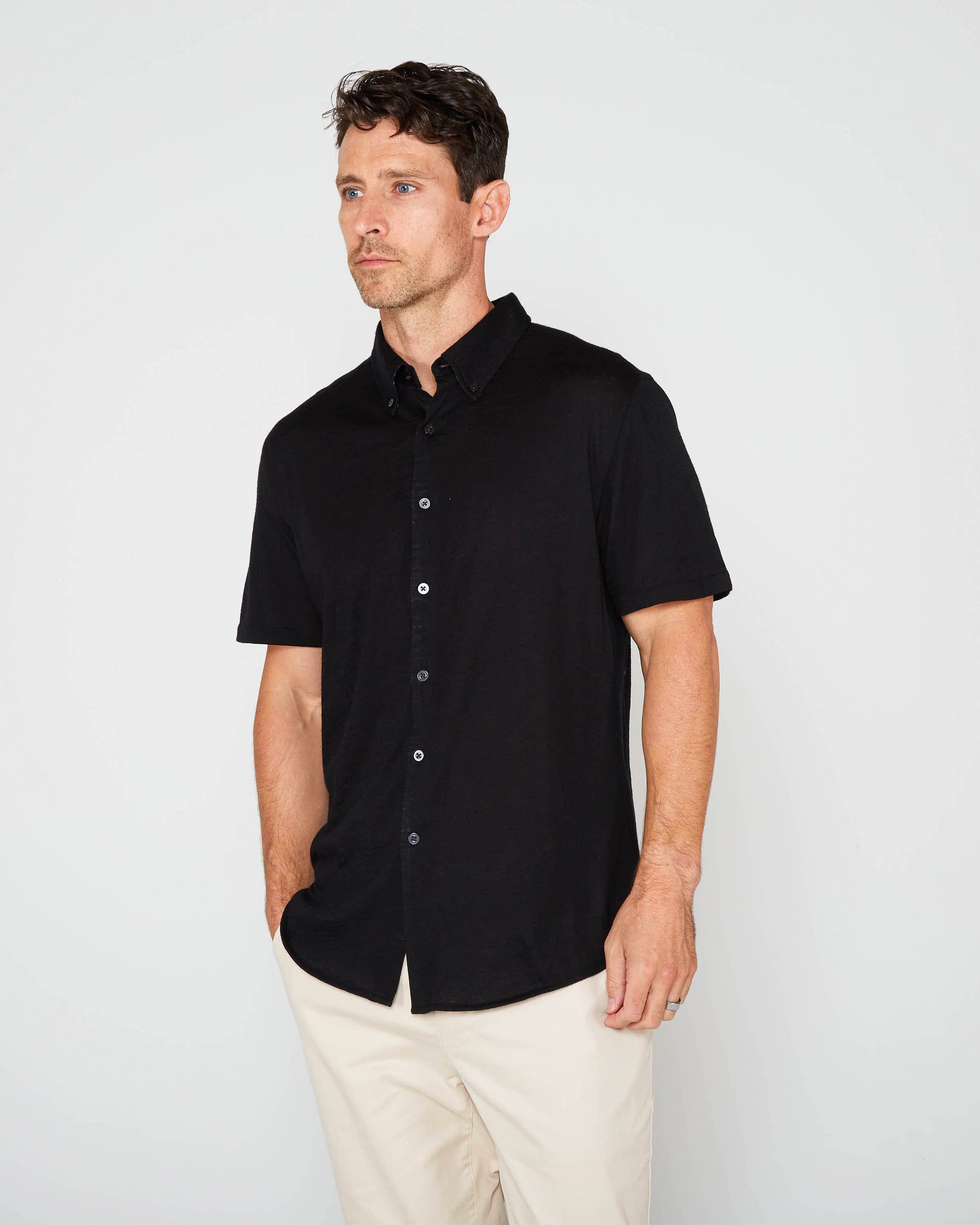 TOBIAS MERINO SHIRT - BLACK